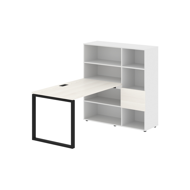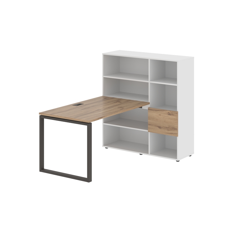 Каркасы стеллажей полностью из ЛДСП т.18 мм с кромками ПВХ т.2 и 0,45 мм, задняя стенка из ЛДСП. Комплектуется малой дверью в цвет столешницы и регулируемыми опорами h= 27 мм.