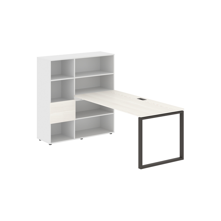 Каркасы стеллажей полностью из ЛДСП т.18 мм с кромками ПВХ т.2 и 0,45 мм, задняя стенка из ЛДСП. Комплектуется малой дверью в цвет столешницы и регулируемыми опорами h= 27 мм.