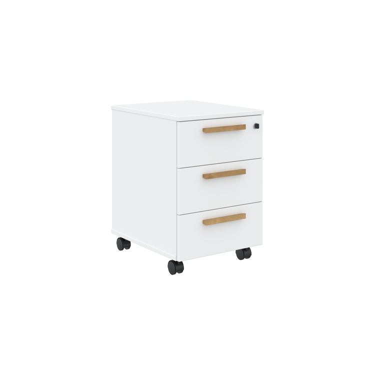 Тумба полностью из ЛДСП т.18 мм, кромки ABS т.2 и 0,45 мм, комплектуется центральным замком, колесными опорами - 2 со стопором и 2 б/стопора. Ящик - фолдинг и дно белого цвета.