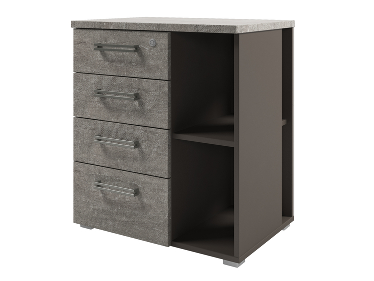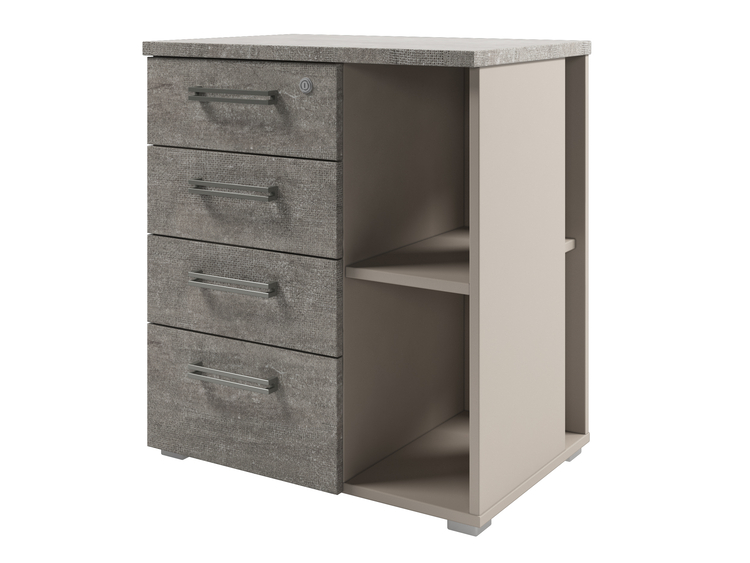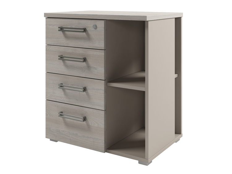 Тумба приставная с 4 ящиками и 2 нишами. Верхний ящик оборудован замком.