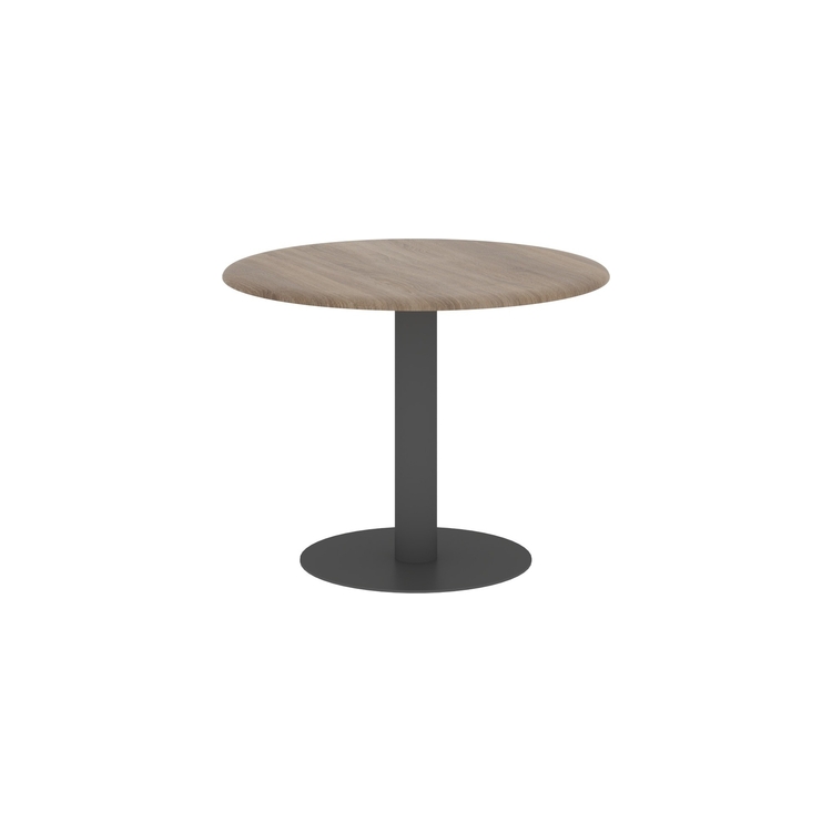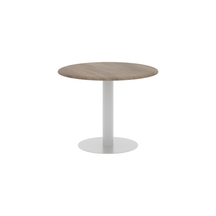 Столешница выполнена из МДФ т.19мм с фрезеровкой, покрытие - пленка ПВХ. Опора металлическая с круглым основанием, диаметр трубы 108мм , диаметр основания 600мм. Опора нерегулируемая, цвет - Белый, Антрацит, Алюминий