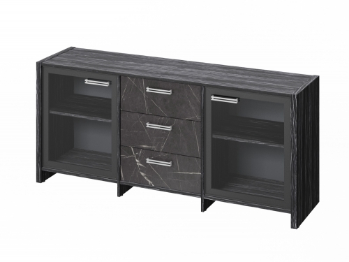 Элемент каталога Тумба трехсекционная с 2 дверьми FB-13-02.G. Древесина Графит/Камень Пьетра Гриджиа черный [1109]