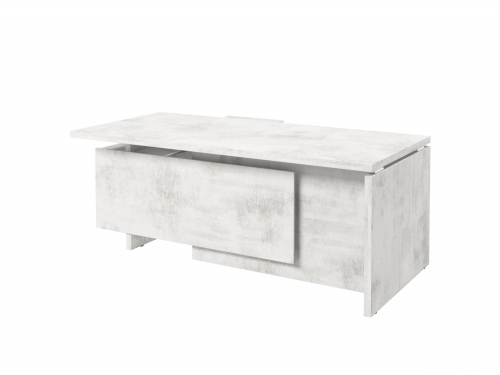 Столешница, бок стола и бок тумбы выполнены из ЛДСП толщиной 38 мм. Цвет - "Хромикс белый". Кромка 2 мм.