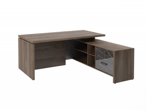 Стол с опорной тумбой FB-117R.GG (R) Орех Пацифик Табак/Камень Пьетра Гриджиа черный